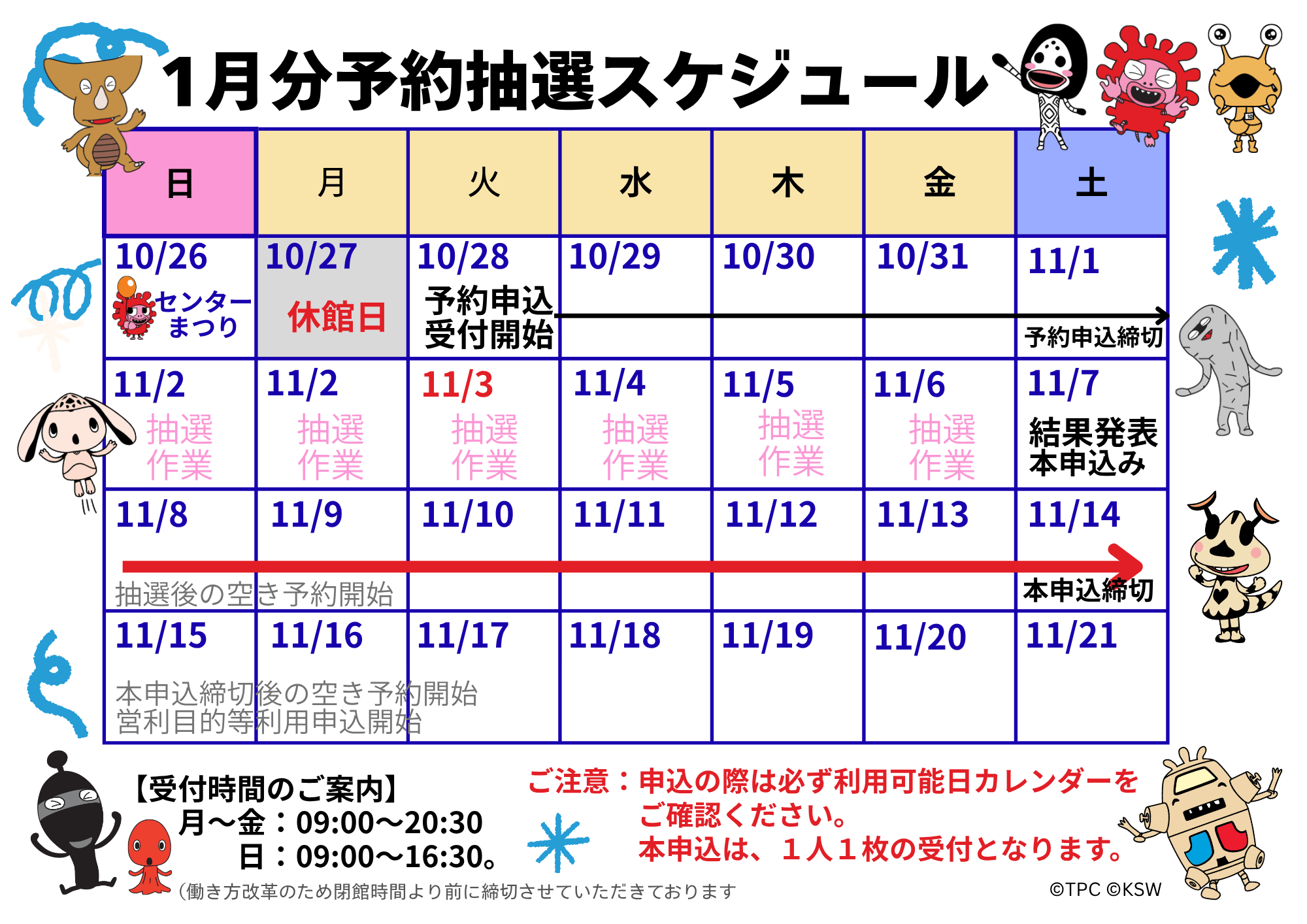それでは、令和8年(2026年)1月ご利用分の予約申込み・抽選に