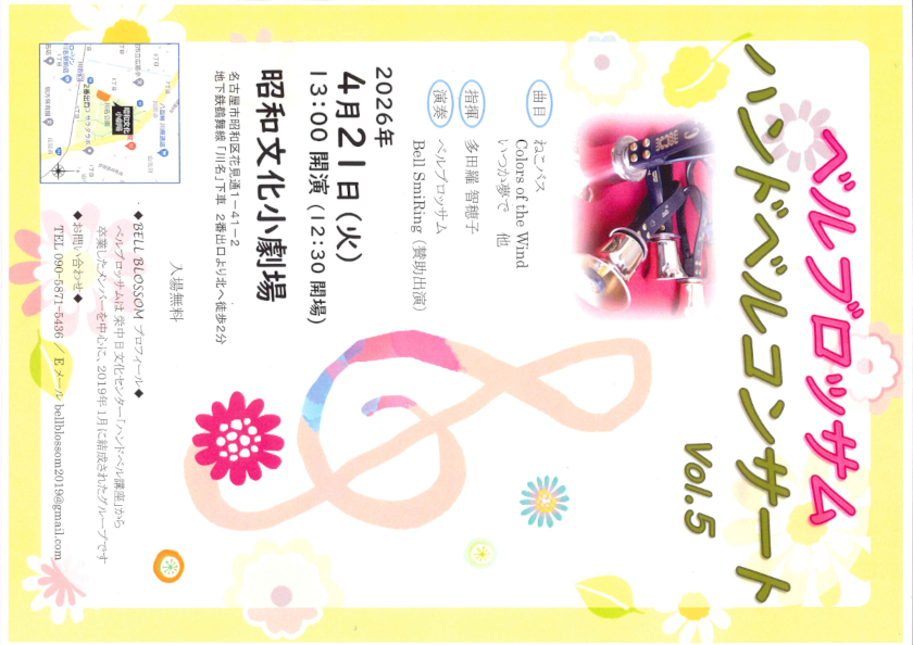 そんな「ベルブロッサム」さんのコンサートが、来週4月21日の火曜日に、